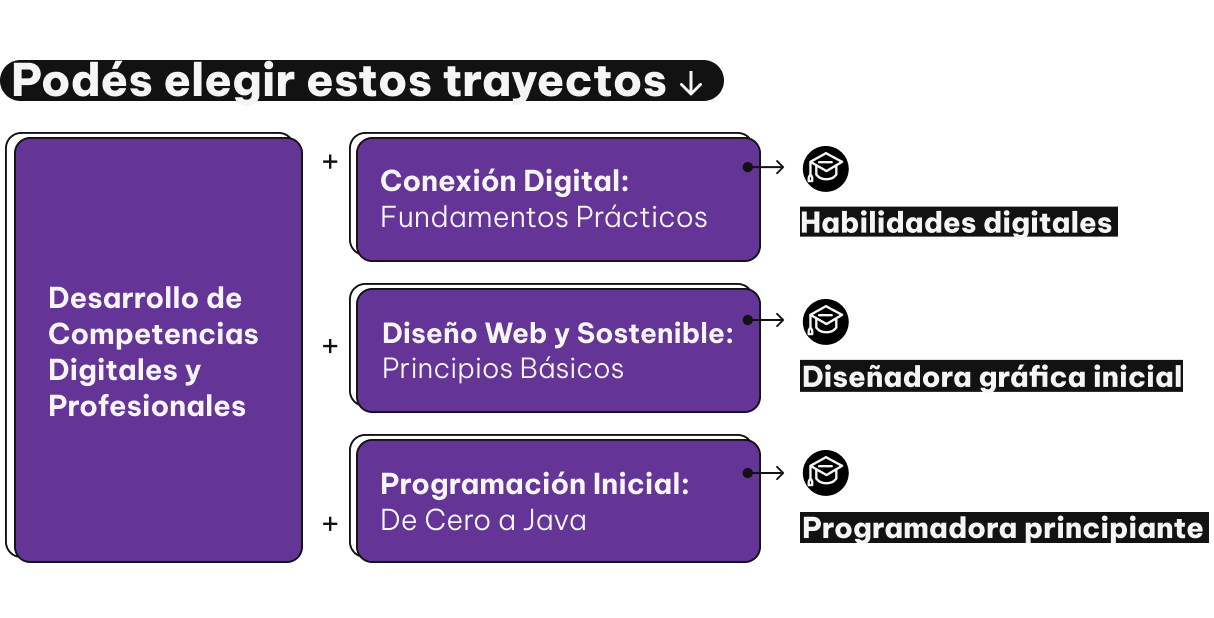 ¡Sí! Después del primer módulo, puedes elegir entre tres perfiles: Usuaria Digital, Diseñadora gráfica inicial o Programadora principiante.